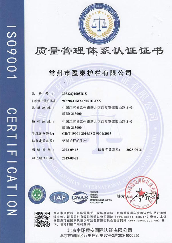 常州市盈泰護欄有限公司專業從事生產及銷售護欄,道路護欄,河道護欄,綠化護欄,圍墻護欄,建筑護欄,廣告護欄,護欄網,鍍鋅鋼制護欄,市政護欄,城市道路隔離護欄,小區護欄,草坪護欄,人行道護欄,機非隔離護欄,中間隔離護欄。常州市盈泰護欄有限公司坐落于中國長三角城市常州,主要立足于國內,專業生產并且銷售護欄,道路護欄,河道護欄,綠化護欄,圍墻護欄,建筑護欄。溶入“以人為本,品質創新,完善服務”的企業理念。